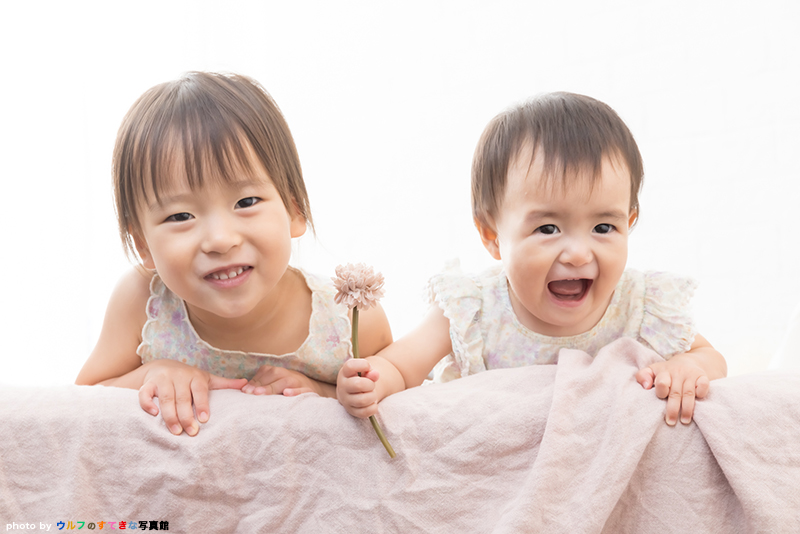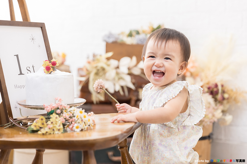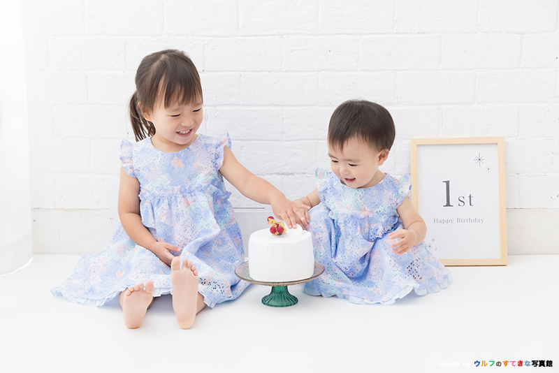 お誕生日ケーキにふれて遊ぶ、仲の良いご姉妹のお姿に、心あたたまります*
